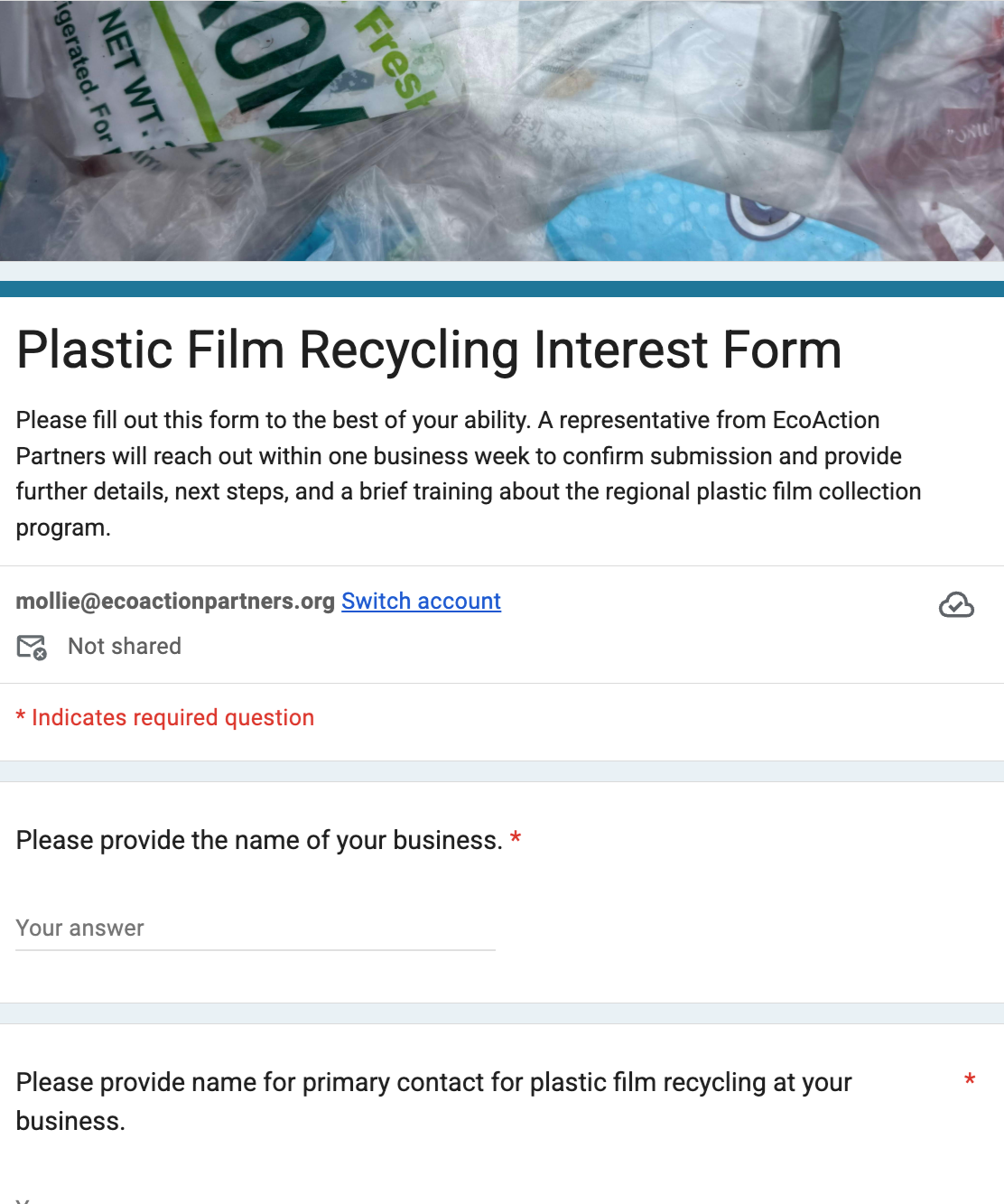 Collect plastic film at your business. EcoAction will provide your first 10 bags.