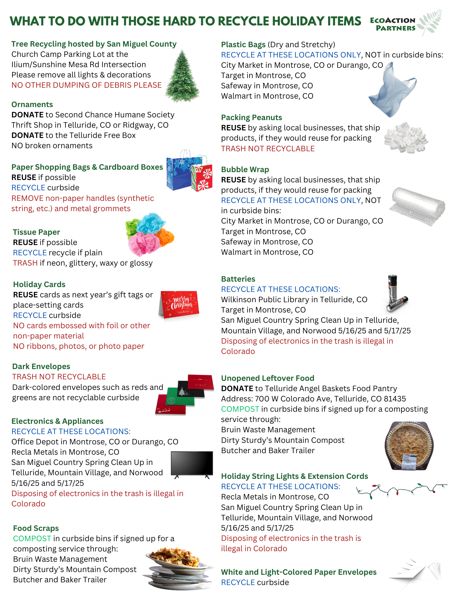 Plastic film recycling for businesses across the region is back! Please visit our webpage to learn more about the program. Individuals can also bring plastic film waste to City Market, Walmart and Target in Montrose, CO.